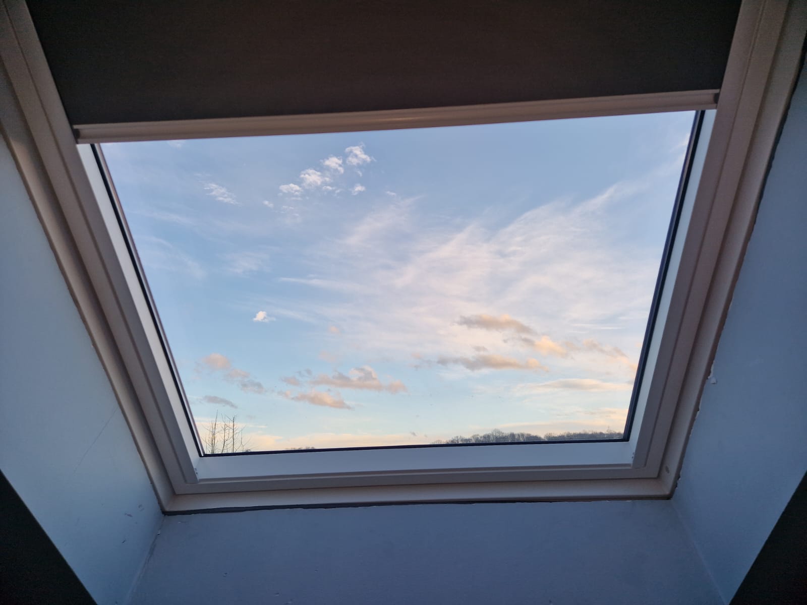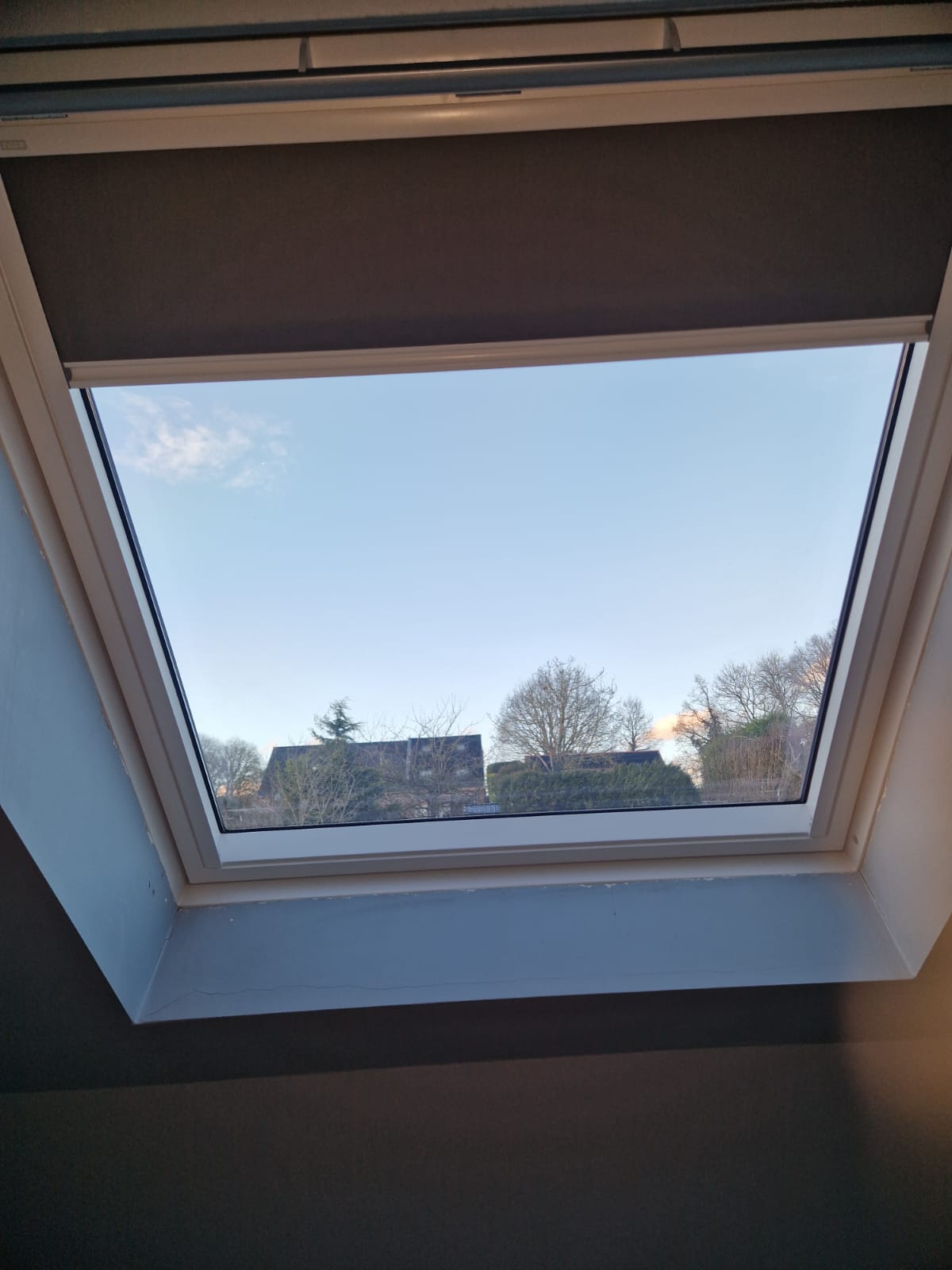 ✅ Premier chantier : remplacement de quatre Vélux, tous équipés de stores occultants, pour un maximum de luminosité le jour et une obscurité parfaite la nuit.